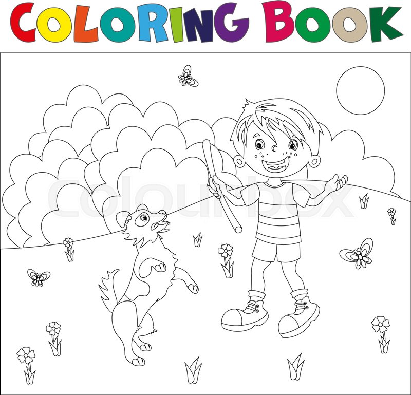 Dog With Owner Coloring Page Stock Vector C Izakowski 65072629