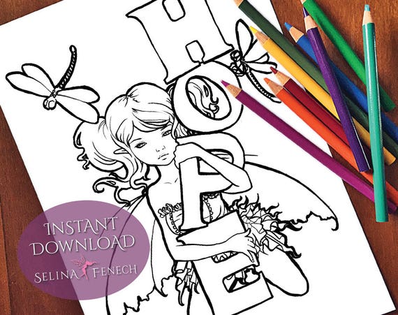 Fairy And Dragonfly Coloring Page Digi Stamp Fantasy Printable Etsy